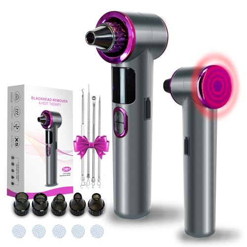Blackhead Remover with Heating, 3 Adjustable Levels and 9 Modes, 5 Head Comedone Extractor Kit for...