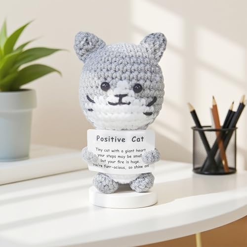 12. LanXiaLore Crochet Cat with Affirmations – Cute Comfort